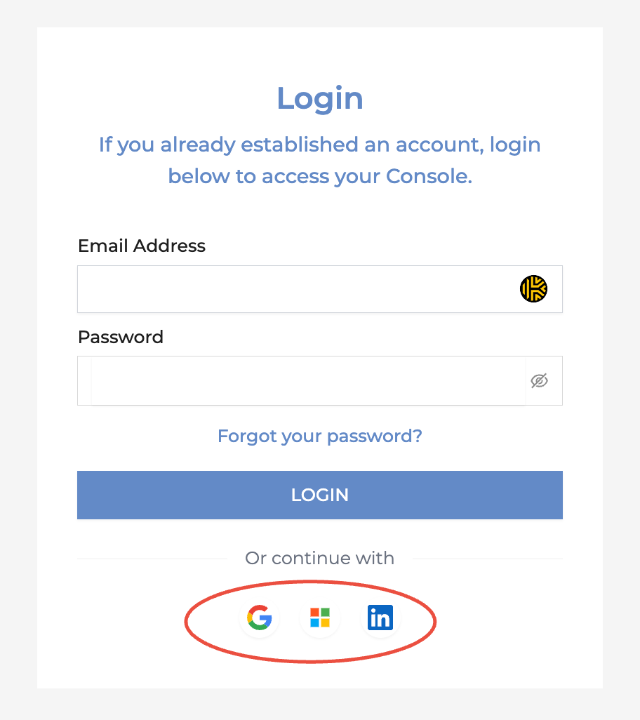 You can set up Single Sign On (SSO) for your account by using Microsoft, Google, or LinkedIn credentials when registering or logging in. Just click the corresponding provider logo on the login/create account pages.